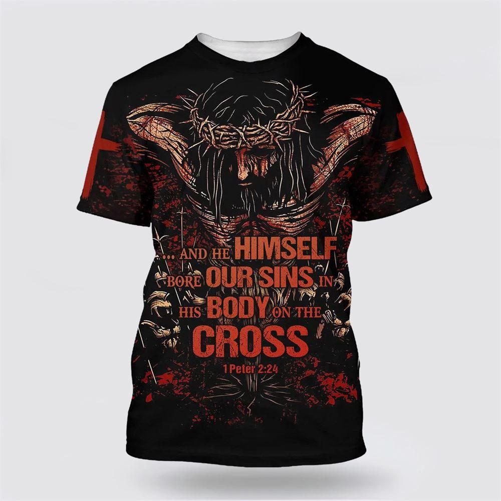 And He Himself Bore Our Sins In His Body On The Cross All Over Print All Over Print 3D T Shirt, Gifts For Christians The 3D Shirt is more than just apparel; it’s a visual marvel. Using cutting-edge printing technology, intricate designs come to life with depth and realism. Crafted from high-quality materials, it offers both comfort and style. The three-dimensional graphics create an eye-catching effect that’s perfect for casual wear or making a bold statement. Whether you’re expressing your fandom or showcasing your unique taste, the 3D Shirt is a wearable work of art that sets you apart from the crowd.