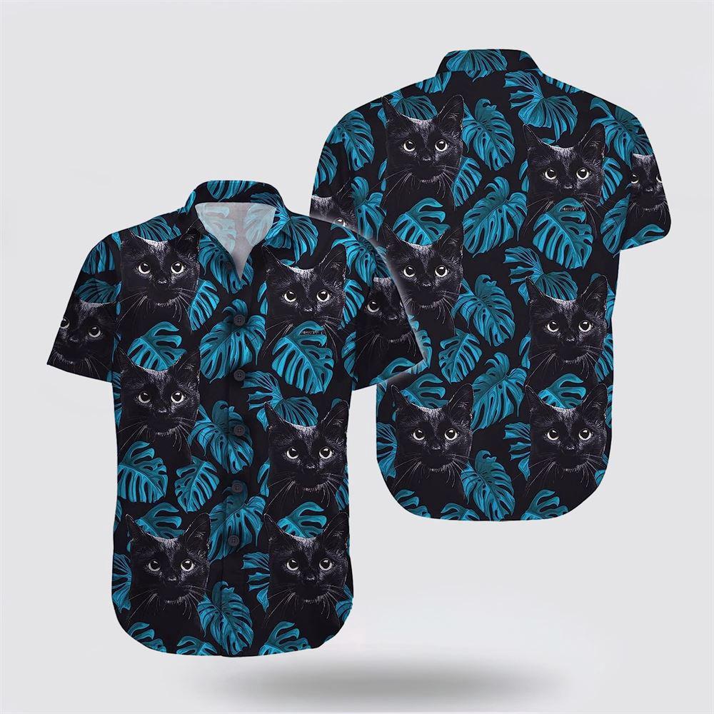 Black Cat In Blue Leaves Tropic Hawaiin Shirt, Gifts For Pet Lover