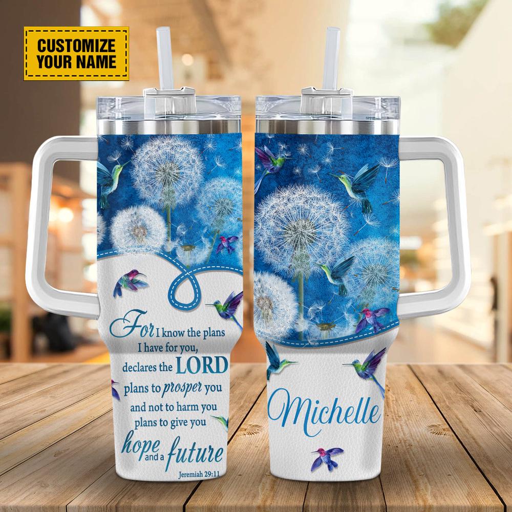 For I Know The Plans I Have For You Jeremiah 2911 Stanley Tumbler 40oz, Christian Tumbler Introducing our Curved Tumbler, designed to enhance your beverage enjoyment. Crafted with a sleek and ergonomic curved shape, it fits comfortably in your hand. With double-wall insulation, it keeps drinks hot or cold for hours. Perfect for on-the-go hydration, our Curved Tumbler combines style and functionality seamlessly. Elevate your drinking experience with our premium tumbler today.