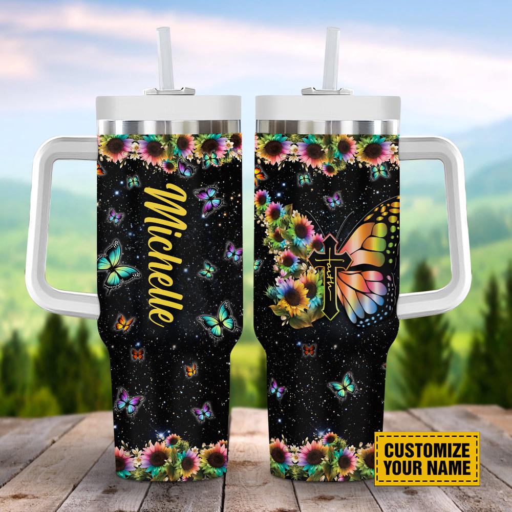 Galaxy Faith Cross Butterfly With Sunflowers Stanley Tumbler 40oz, Christian Tumbler Introducing our Curved Tumbler, designed to enhance your beverage enjoyment. Crafted with a sleek and ergonomic curved shape, it fits comfortably in your hand. With double-wall insulation, it keeps drinks hot or cold for hours. Perfect for on-the-go hydration, our Curved Tumbler combines style and functionality seamlessly. Elevate your drinking experience with our premium tumbler today.