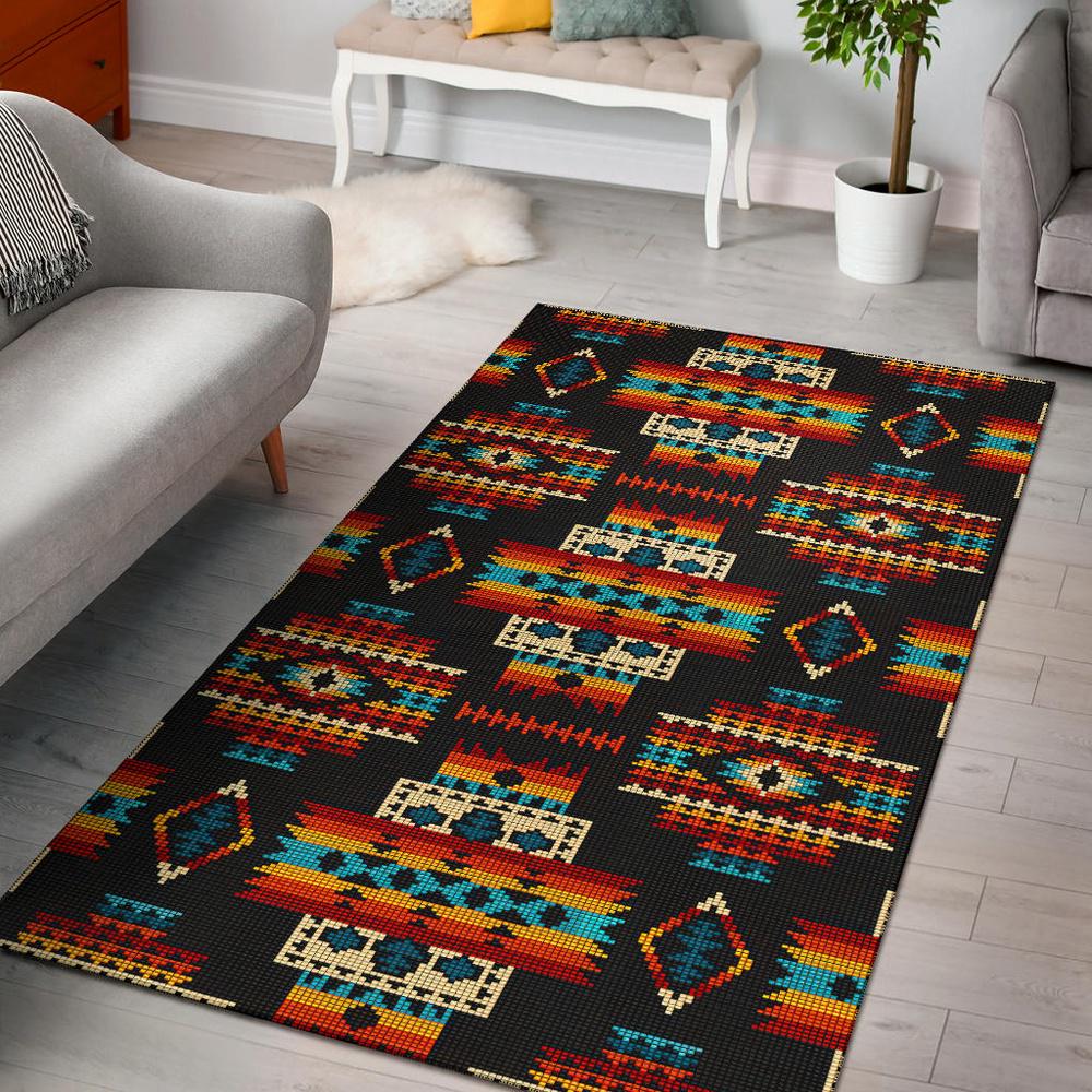 Native American Rug, Black Pattern Native Area Rug